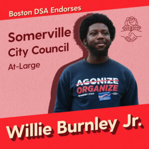 DSA Boston is proud to endorse Zac Bears! A life-long resident of Medford with first-hand experience with the housing affordability crisis, Zac Bears is a DSA member who is running for reelection to continue the fight for the city budget Medford deserves. With an emphasis on using the budget to fund city services and public schools–a modern-day ‘Sewer Socialist’–Zac believes in moving funding away from the city police and toward emergency response services like mental health support professionals and civilian traffic enforcement. Get to know Zac here.